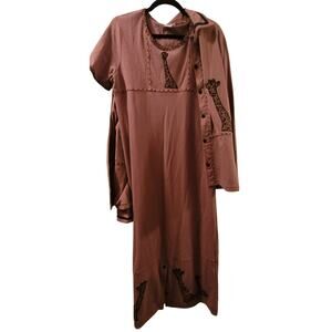 Vtg Safari Embroidered Maxi Brown Dress With Cardigan Womens Giraffe Cotton Size M Country Wear Casuals Lonee G Star Neutral