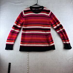 Vtg Sag Harbor Chenille Pullover Sweater Multicolor Stripe Long Sleev M/L VERIFY