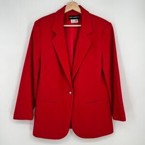 Vtg Sag Harbor Wool Blazer Womens 8 Red One Button Boxy Single Breasted Jacket
