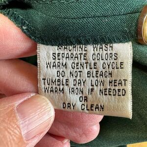 This vintage Saks Fifth Avenue button-up shirt is a must-have for any wardrobe. The forest green color and solid pattern make it a versatile piece for any occasion, whether it's a casual day out or a business meeting. The shirt features a collared neckline, long sleeves, and button closure with accent buttons.