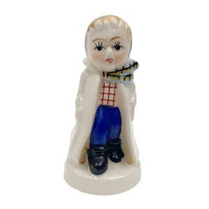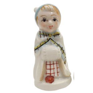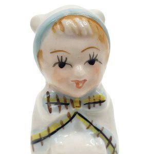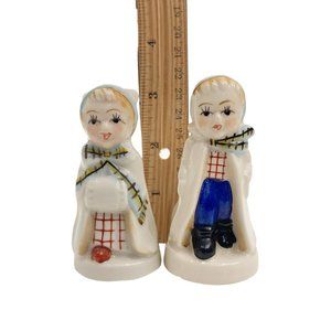 Vintage Salt Pepper Shaker Boy Girl Couple Japan Figurine Cake Topper Anniversary Victorian Style Winter Coat Scarf and Muff