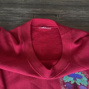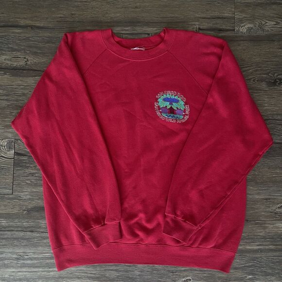 This vintage San Diego Zoo Wild Animal Park crewneck sweatshirt is a must-have for animal lovers and enthusiasts. The red sweatshirt features a graphic print of Australian Koalas on the front and the park's logo on the back. The long-sleeved pullover sweatshirt is made of comfortable cotton fleece material and is machine washable for easy care. It comes in a regular fit and is available in size M, making it perfect for unisex adults.