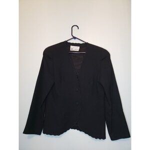 Vtg Sandra Roth Ciao Sport Womens 10 Blazer Jacket Scalloped Black Wool Lined