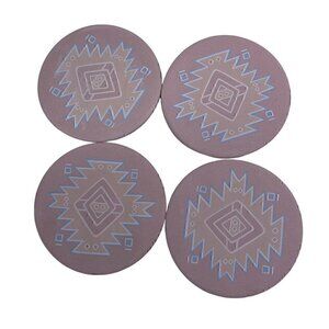 Vtg Sandstone Coaster Southwest Tribal Made in USA Pink Set Of 4 Dew Stopper