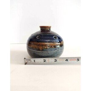 Vtg Sandy Hagist Pottery 6 Hole Round Incense Burner Holder Signed Blue Brown