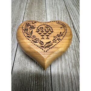 This charming vintage Sankyo Lasercraft music box is heart-shaped and crafted from wood. It plays the delightful tune "It's A Small World," making it a perfect keepsake or gift for music lovers and collectors alike.