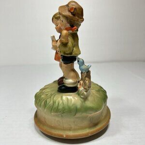 Vtg Sanmyro Porcelain Boy & Girl Bird Guitar Rotating Music Box Japan Flaw 6”