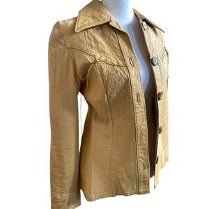 Vtg Santa Fe Leather floral embossed Shirt jacket womens S tan western boho USA