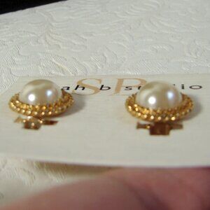 Vtg Sarah B Studio 80s Clip-On EARRINGS x2 Pair: Faux Pearl & Hoop, MOC F97