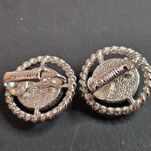 Vintage Sarah Coventry brand "Northern Lights" iridescent multi-color clip-on earrings. Measure approximately 3/4" across. Silver tone. Beautiful condition, no issues noted.