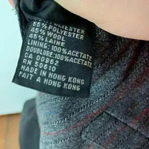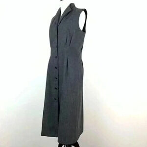 Vtg Sasson womens dress size 8/10 charcoal gray red striped button down career 70’s 80’s 45% wool vintage