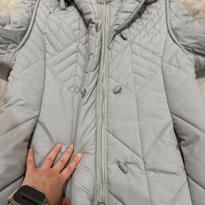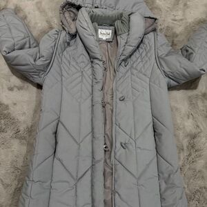 Vintage Saxton Hall Women's Quilted Puffer Coat Medium Gray Hooded Jacket Made in Korea