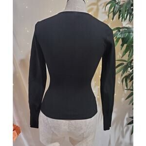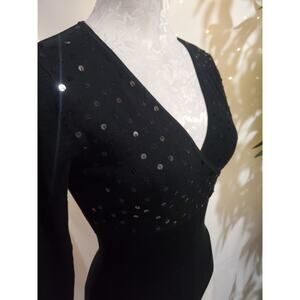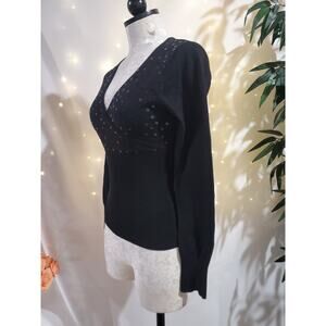 Vtg Say What? Y2K Silk Sequin Ribbed Crossover Sweater Womens Size L Black USA