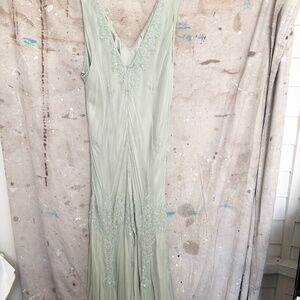 Vtg Scala Silk Beaded Dress Drop Waist Fairy Dress