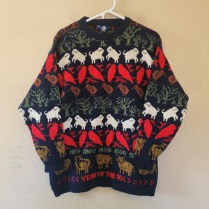 Preowned in great condition, no flaws, Vtg Scan Alp Alpine PURE 100% Wool Farm Year Of Ox Sweater