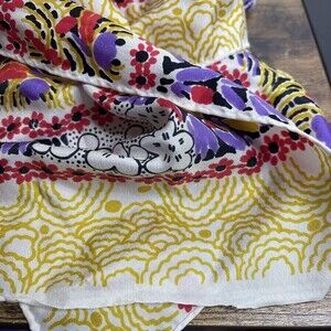 As an authentic vintage piece, this scarf carries the charm of a bygone era, exuding a sense of timeless beauty that never goes out of style. Whether you're a collector of vintage accessories or a fashion enthusiast looking for a statement piece, this unique pattern is sure to captivate.