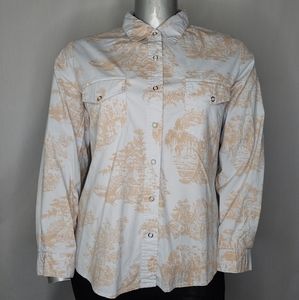 Vtg Sceneic Snap Button Shirt XL Print Collar Long Sleeve Cottagecore Western