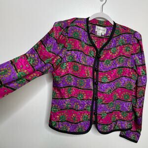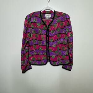 Schrader Vintage 2 Piece Button Up Pink Purple Cardigan & Pleated Pants Multicolor Black 10