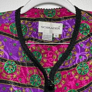 Vtg Schrader 2 Piece Suit Pink Purple Cardigan Pleated Pants Multicolor Black 10