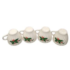 Vtg Scio Pottery Holly Berry White Swirled Ceramic Tea Coffee Cups Set Of 4