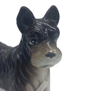 A vintage Scottish Terrier figurine, meticulously crafted with a glossy finish. Ideal for collectors or as an elegant decor piece.