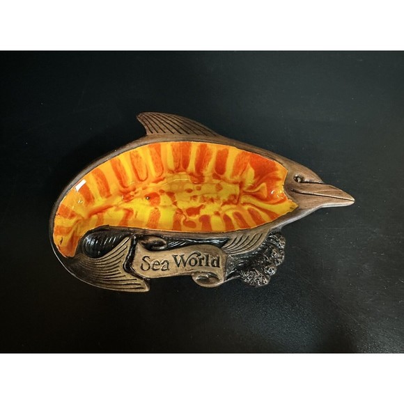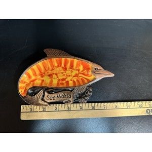 Vtg Sea World Orange Glazed Sword Fish Tray/Bowl Souvenir Faux Wood