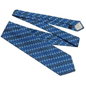 Vtg Sears The Men's Store Tie Necktie Polyester Blue Geometric Stripes Mod 70s