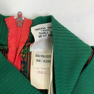 Adorable little vestigan for a Winnie the Pooh fan. Would be great for Halloween or the Holidays. Vintage made by Sears. Zip back red and green plaid long sleeve women sweater mockneck top with gold buttons on front. Side slits at waist for tucking in hands, but not stitched with a pocket lining.