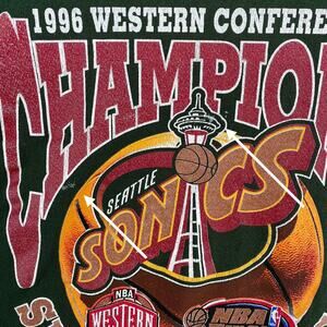 Vtg Seattle Sonics 1996 Western Conference Champions NBA Finals XL Logo 7 Rare