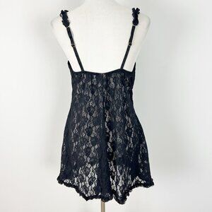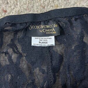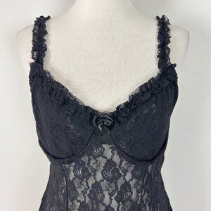 Vtg Seductivewear Black Floral Mesh Slip Ruffles Vamp Romantic Size XL Women's