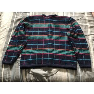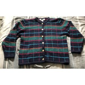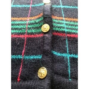 Vtg Segue Mohair Blend Cardigan Gold Buttons Medium 80s Colorful Preppy Sweater