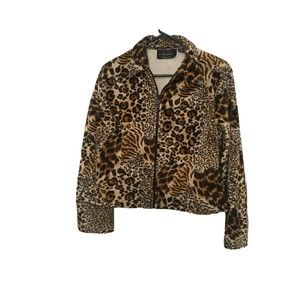 Vtg Selene Sport Women's Juniors Leopard Print Soft Fleece Zip Jacket Size M
