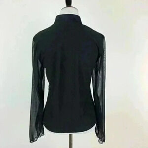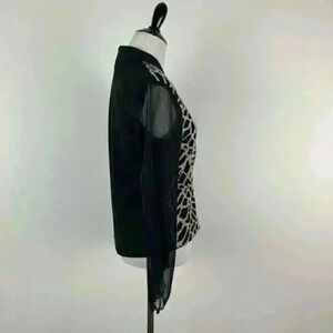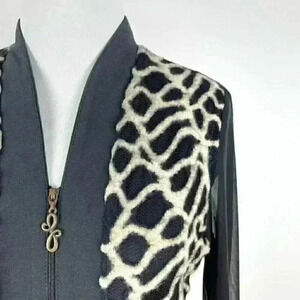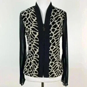 Vtg Selene blazer size M black cream animal print zip v-neck career 80s 90s