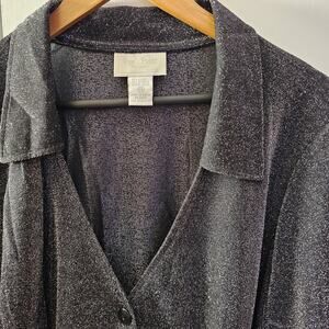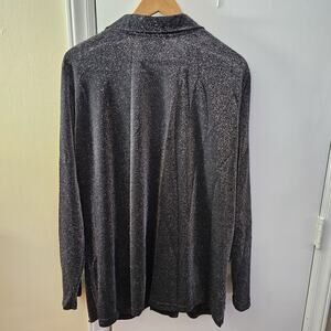 Vtg Semi Sheer Black Silver Metallic Button Up Shirt Size2X Y2K 90s Witch Dark