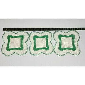Vtg Set 4 Doilies Hand Crocheted Knitted Linen Apple Green Scalloped Kitsch