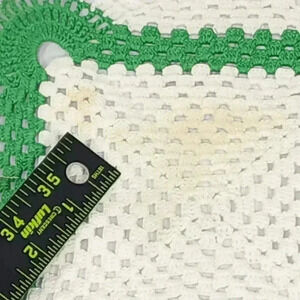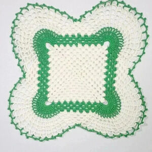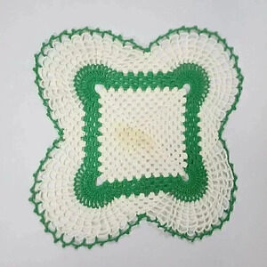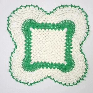 Lot of 4 White with Apple Green Edging Crocheted Doilies.