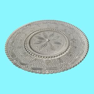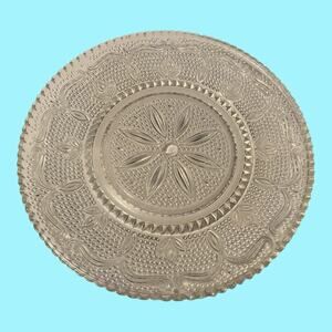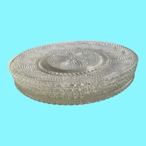 Vtg Set 4 Federal Heritage Clear 9.25” Glass Beaded Dinner Plates Scalloped Rim