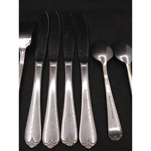 Vtg. Set Of 11 International China Satin Lotus Pattern ? Stainless Flatware READ
