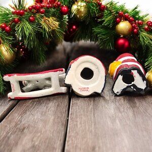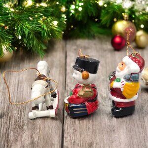 Vtg Set Of 3 Hand-Painted Ceramic Christmas Ornaments Santa Toy Soldier Horse