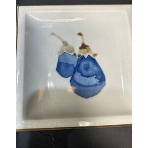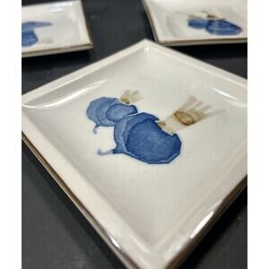 Add a touch of vintage charm to your dining experience with this set of three Otagiri Japan square plates. Featuring whimsical designs of mushrooms and eggplants and onion , these plates are perfect for serving hors d'oeuvres or as decorative pieces. Made of durable stoneware and crafted in Japan, these plates are sure to add a unique touch to any table setting. With their multicolor designs and intricate details, they are a must-have for any collector or lover of vintage Asian decor. Very good condition, measuring 4.5'' Square x .75'' High,