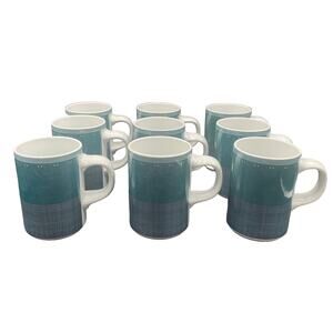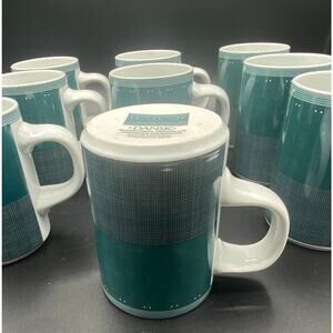 Vtg Set Of 4 Dansk Gridworks Coffee Cup Mug Teal Blue Green
