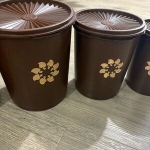 Vtg Set Of 4 Tupperware Brown Mushroom Nesting Servalier Canister W/ 3 Lids