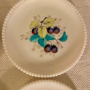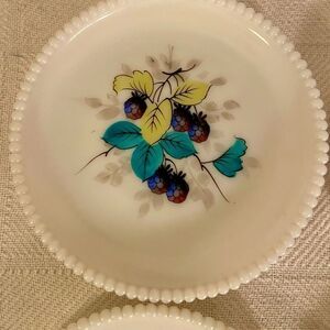 Rare vintage Westmoreland hand painted milk glass hobnail plates. Some of the color has faded on plates due to age. These have no cracks or chips. These were made by Westmoreland glass co. In the late 1930's-1950's. These have been in our family for generations.