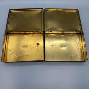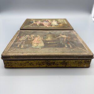 These vintage tin boxes are adorned with historic American scenes, featuring detailed artwork reminiscent of a bygone era. The intricate illustrations capture the essence of American heritage, making them suitable for both display and storage. Ideal for those who appreciate timeless décor with a touch of history.