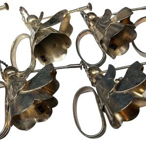 Vtg Set of 13 8 Silver Plated 5 Brass Angels Horns Napkin Rings Christmas 2”