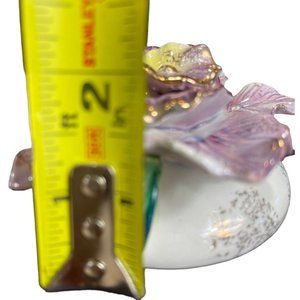 Vtg Set of 2 Commodore Japan Porcelain Purple Flower Candle Holders w/ Stoppers