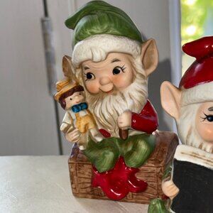 This vintage set of 2 Homco Merry Christmas Elves #5406 from Taiwan features hand-painted ceramic figurines of multicolor elves. The novelty collectibles are perfect for Christmas decorations, adding a touch of whimsy to your holiday decor. Made by the renowned brand Homco, these original elves and fairies figurines are a charming addition to any Christmas display. There are 3 pieces to this set however the hammer is broken off of one so I'm just throwing that one in for free and selling it as a 2 pc set. Please look closely at all of my photos for exact condition and measurements. SKU C4