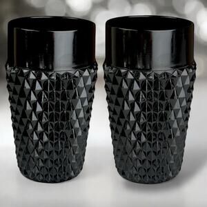 Vtg Set of 2 Indiana Glass Tiara Diamond Point Black Highball Ice Tea Glasses