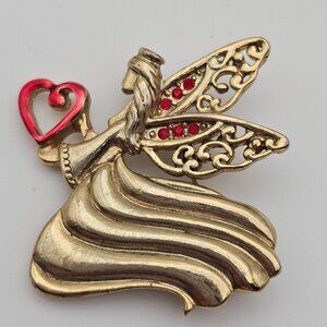 • Angel holding red heart signed AAI, red stones, light wear, 1.5", .36g