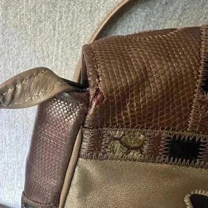 Vtg Sharif 80s Snake Lizard Leather Patchwork Shoulder Bag Tassel